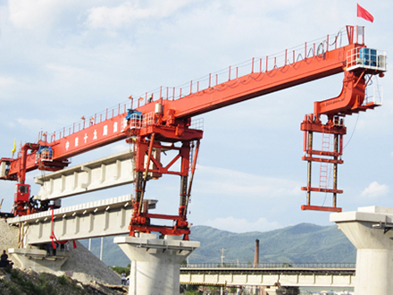 以及生產(chǎn)更新運架產(chǎn)品能架設跨度40M高速鐵路箱梁的:SXJ1000T/40M一跨式架橋機(配套攀爬式運梁車可以實現(xiàn)過隧道零距離架梁)和攀爬式運梁車。并能對現(xiàn)有32M分體式運架設備進行改造,改造后能實現(xiàn)高低位架設跨度40M高速鐵路箱梁(高位改造不能過隧道,把原架橋機改造一跨式,把原運梁車增加2軸。低位改造能過隧道架梁,把原架橋機改造一跨式低位,把原運梁車改成攀爬式運梁車并增加二臺喂梁臺車實現(xiàn)過隧道架梁)。